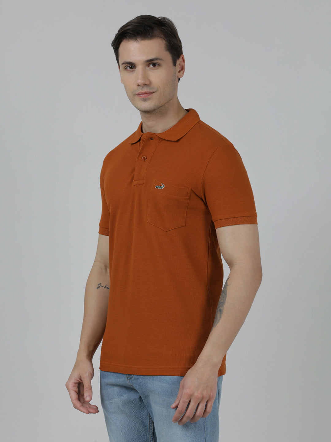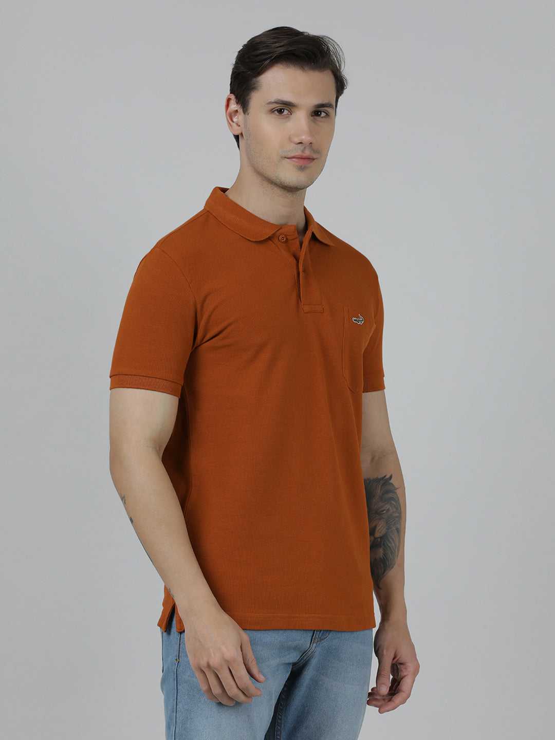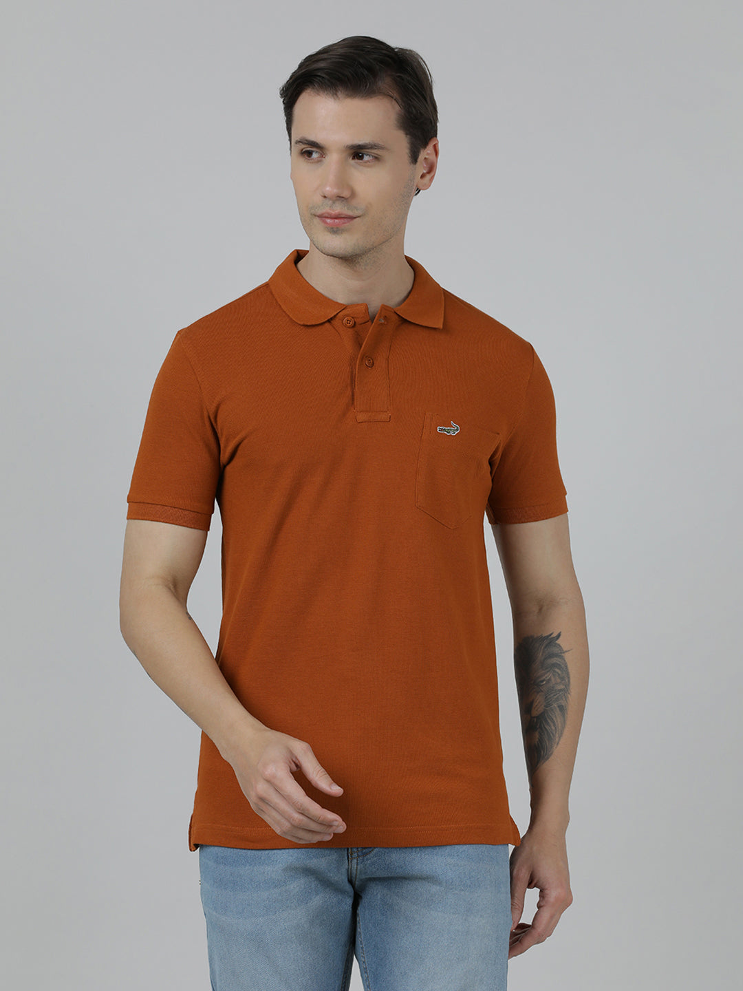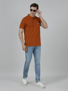 Solid Brown Slim Fit Polo T-Shirt with Pocket