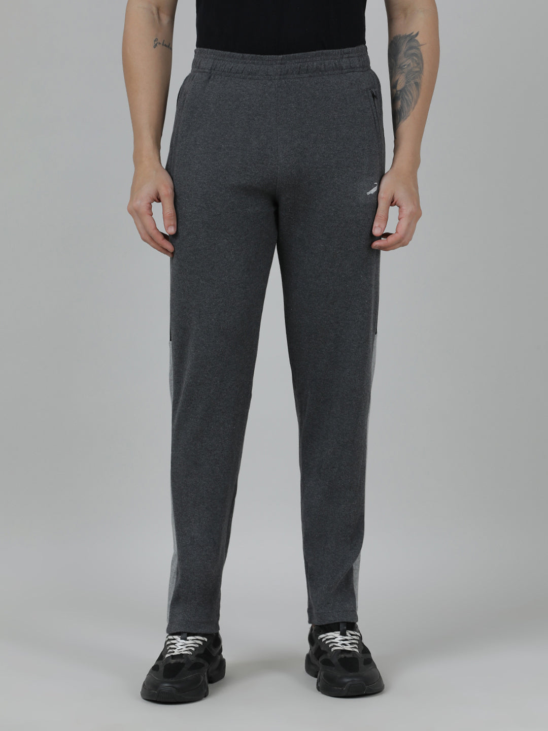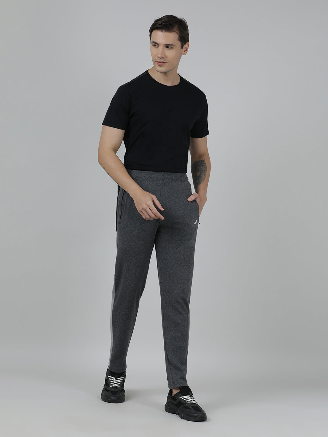 Solid Charcoal Grey Slim Fit Track Pant