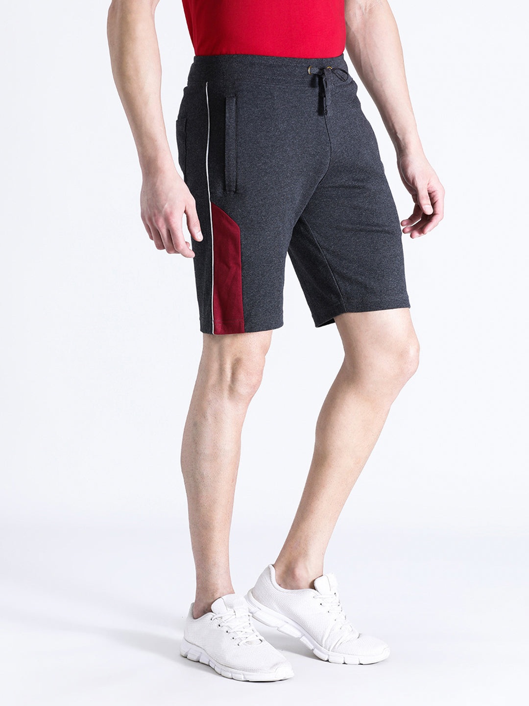 Solid Charcoal Grey Slim Fit Track Shorts