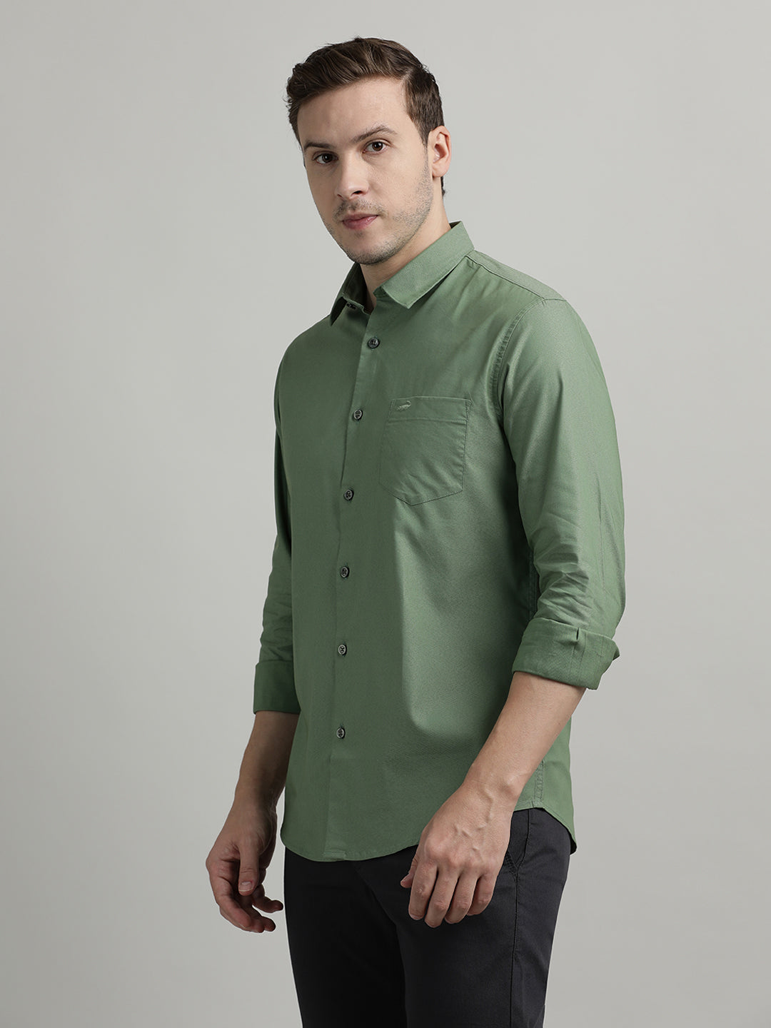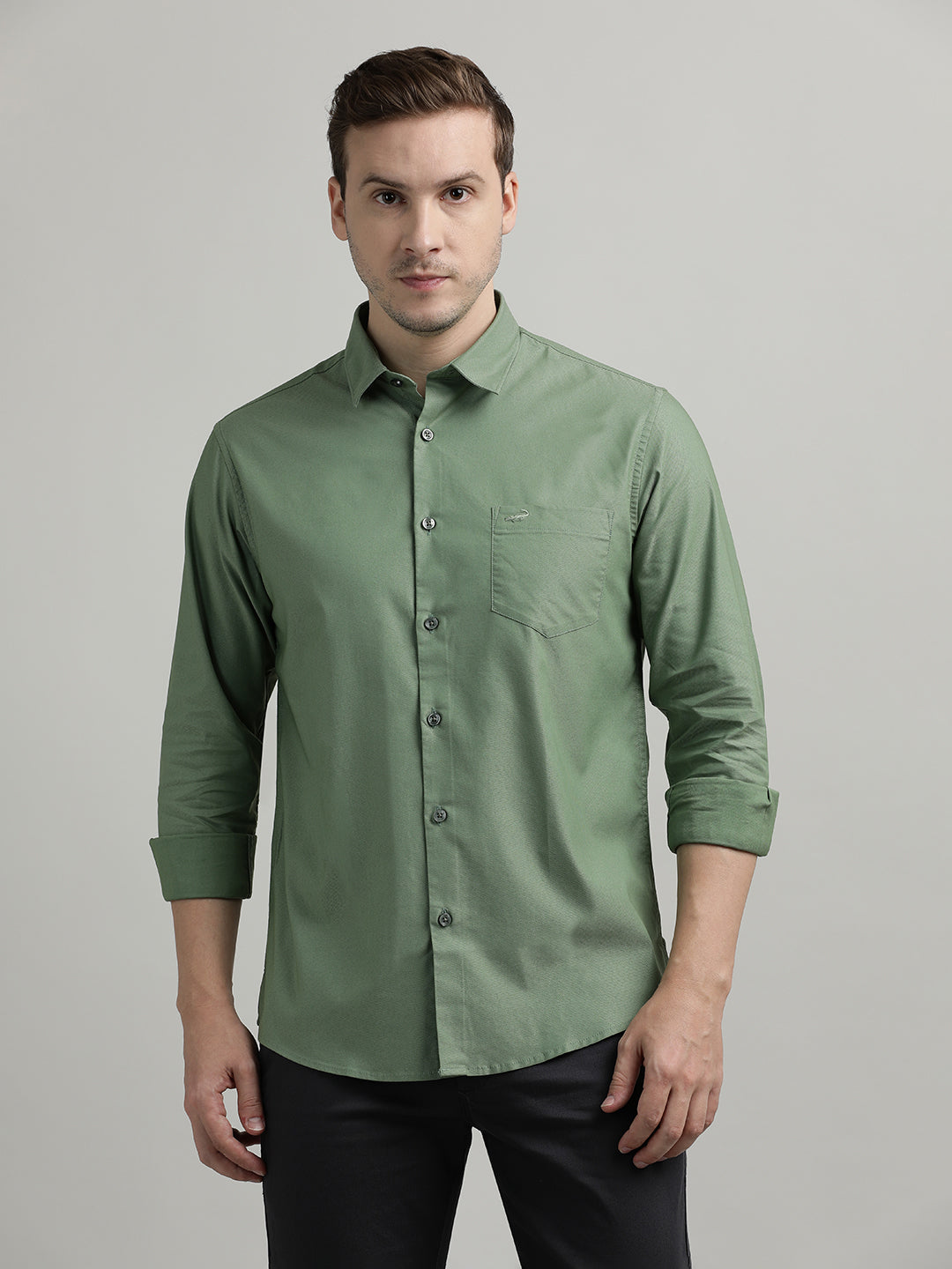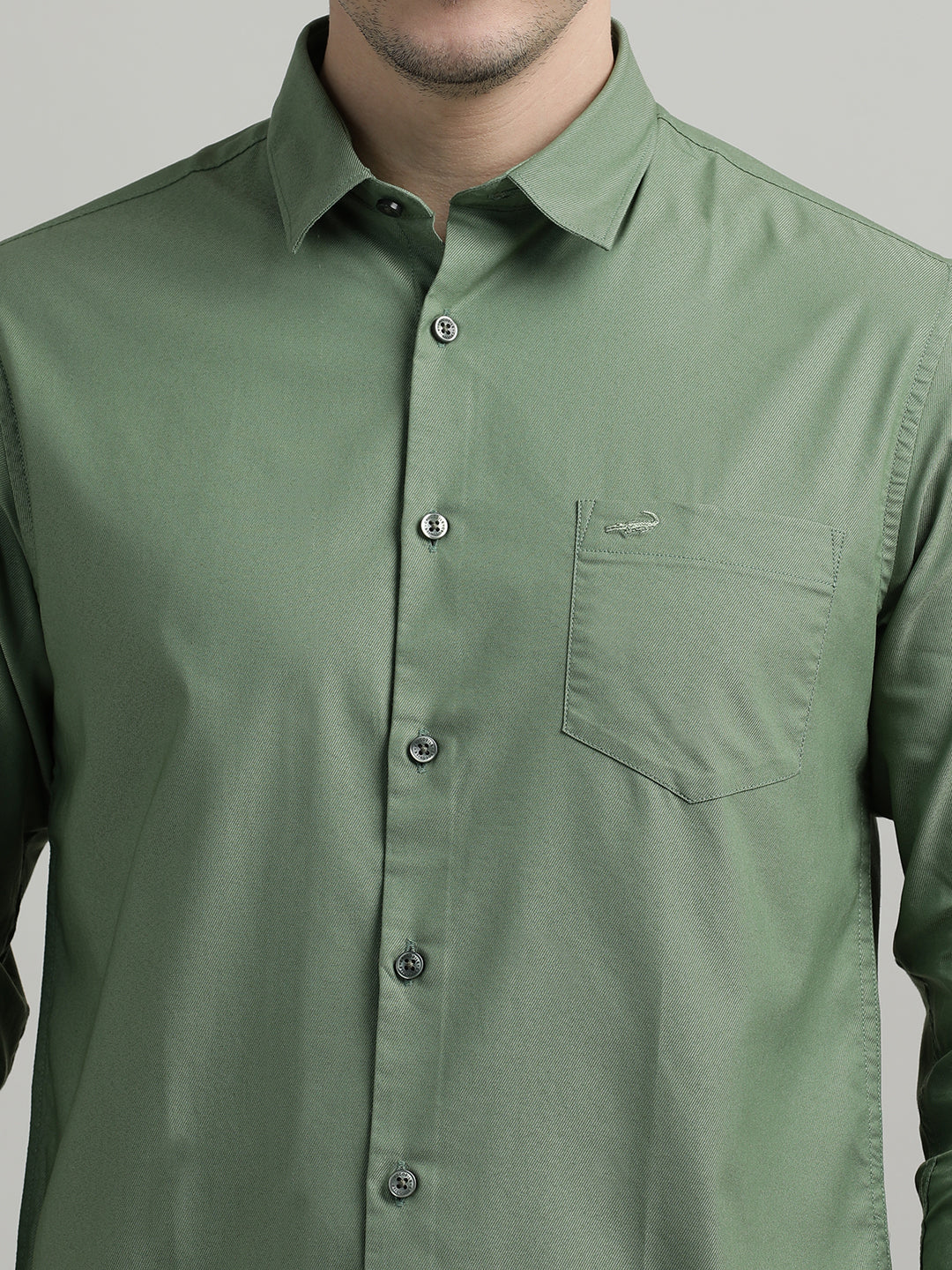 Solid Full Sleeve Olive Green Casual Shirt