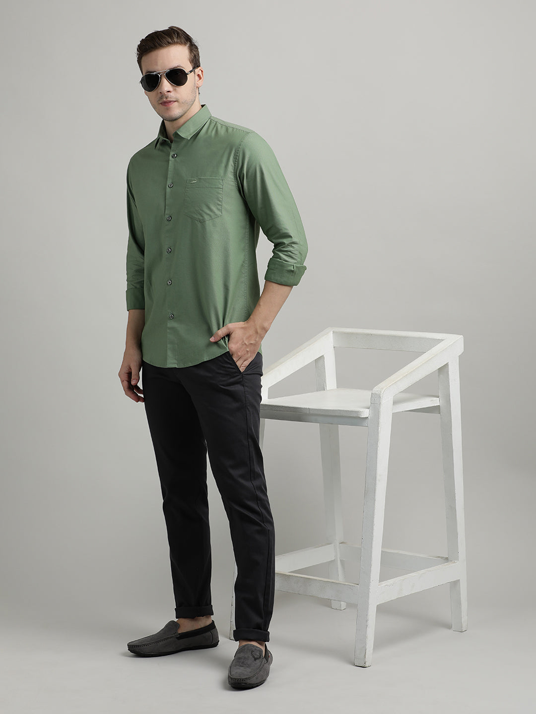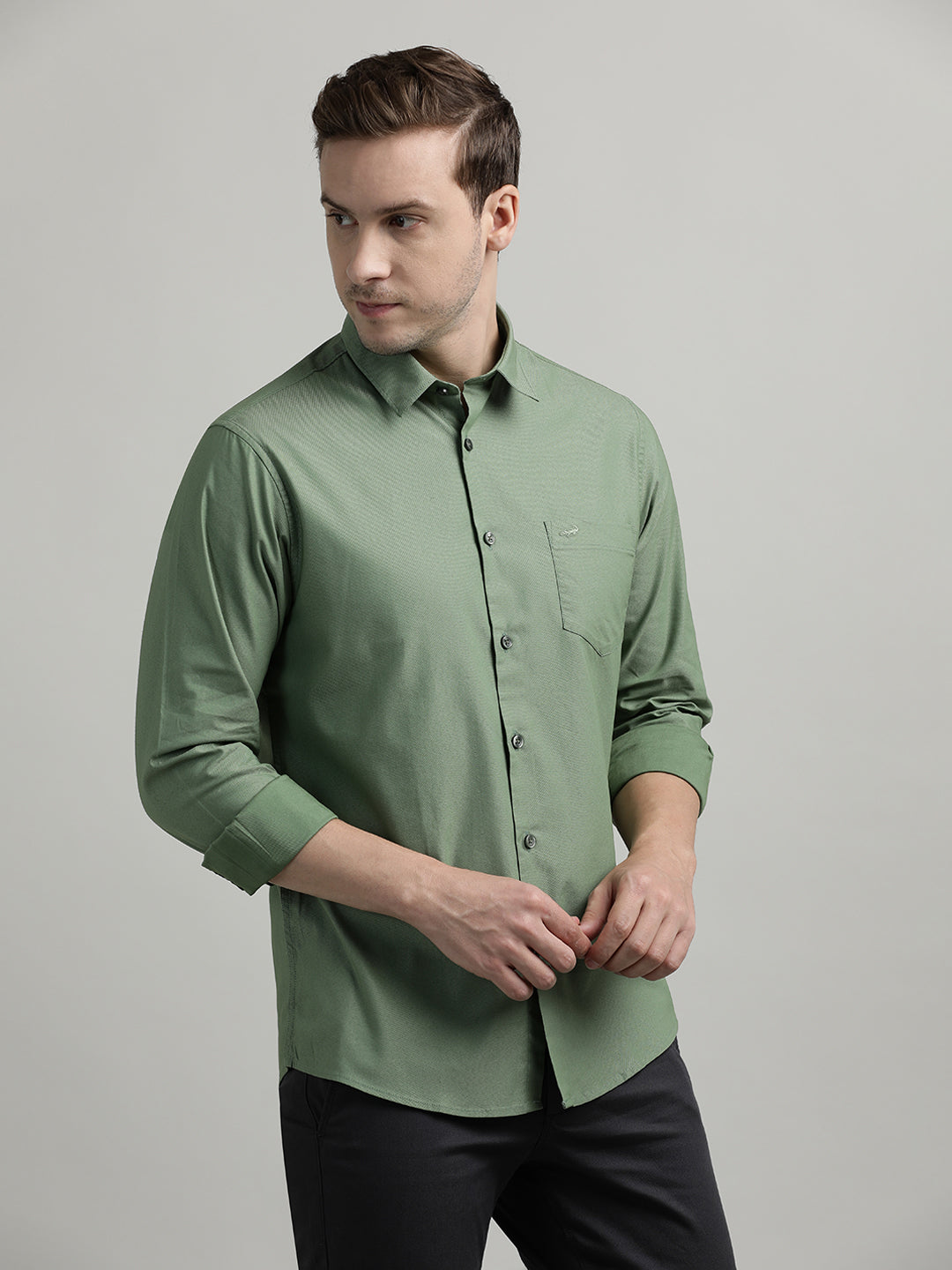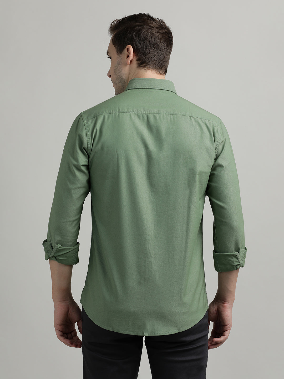 Solid Full Sleeve Olive Green Casual Shirt