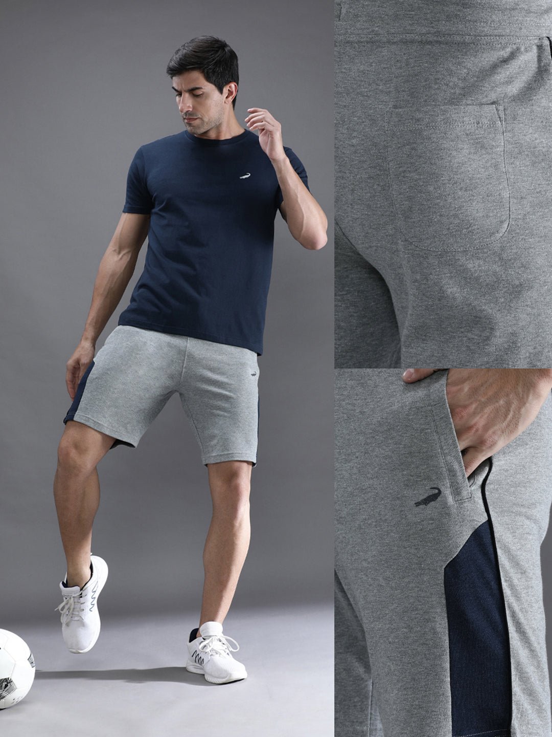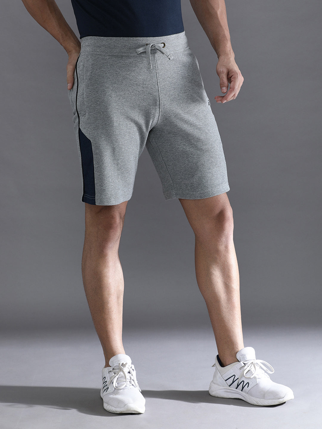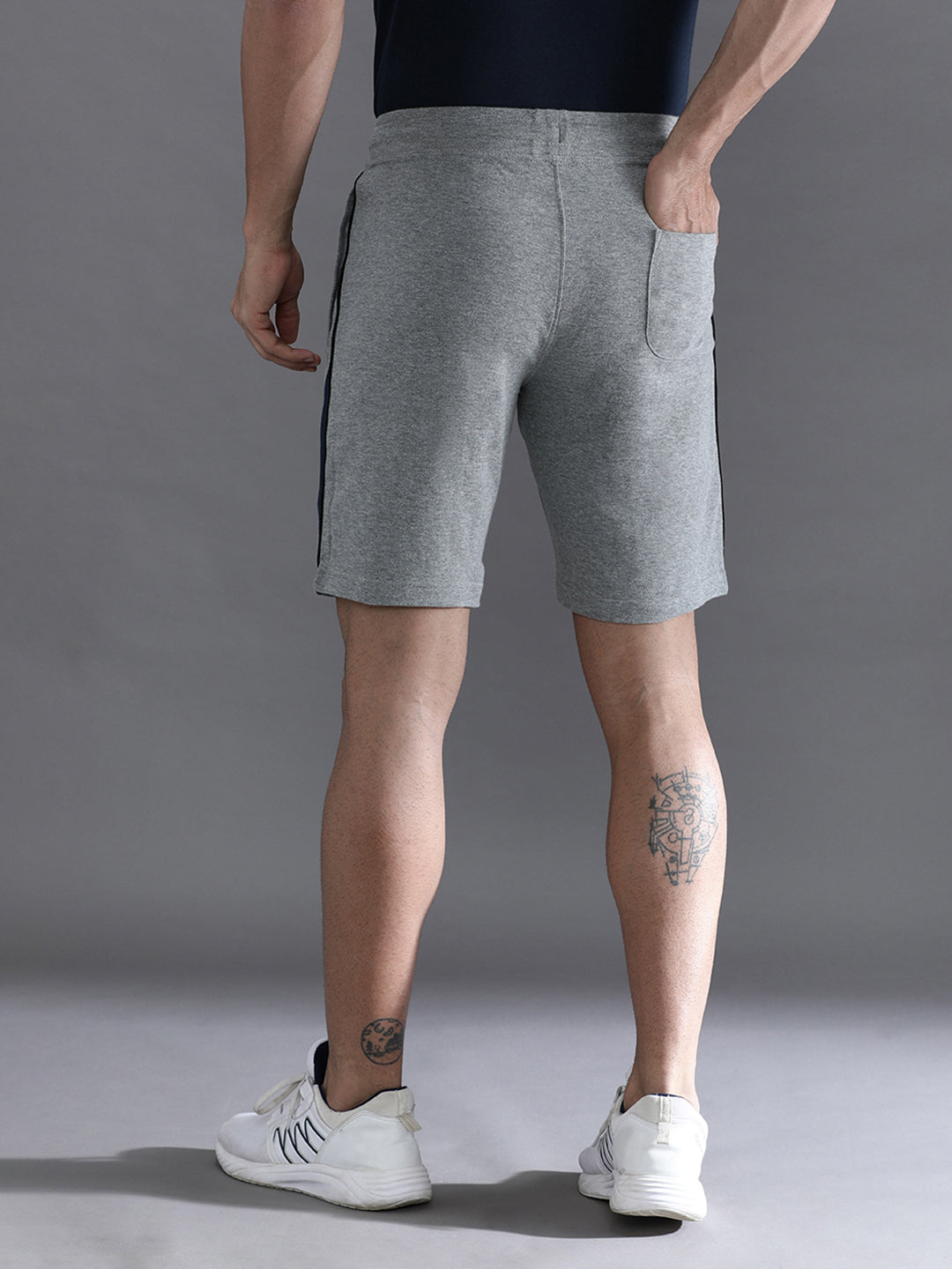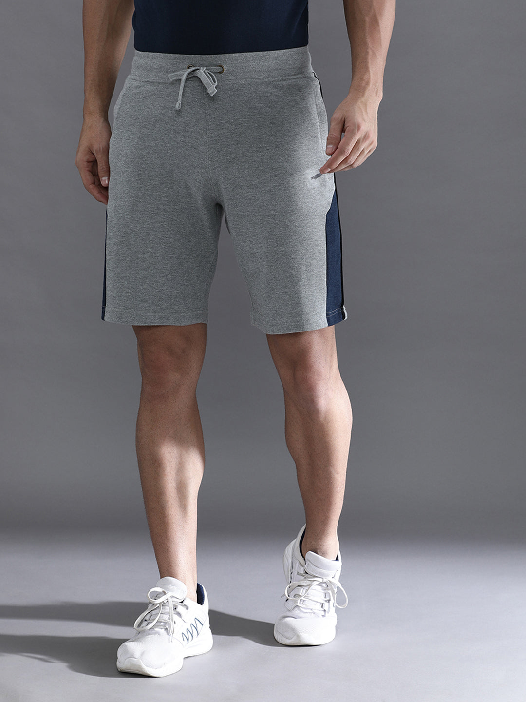Solid Grey Melange Slim Fit Track Shorts