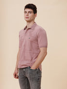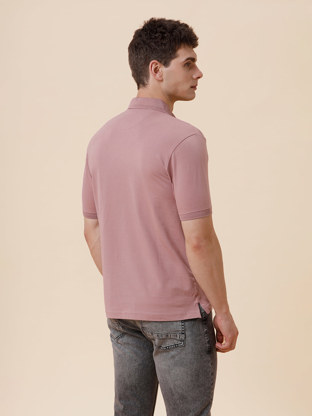 Solid Half Sleeve Casual Pink Polo T-Shirt