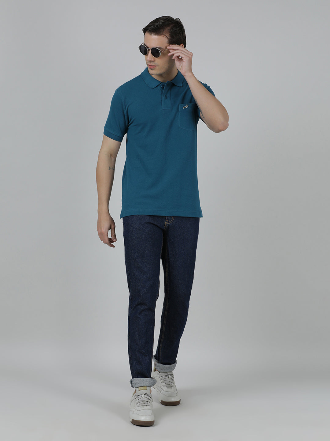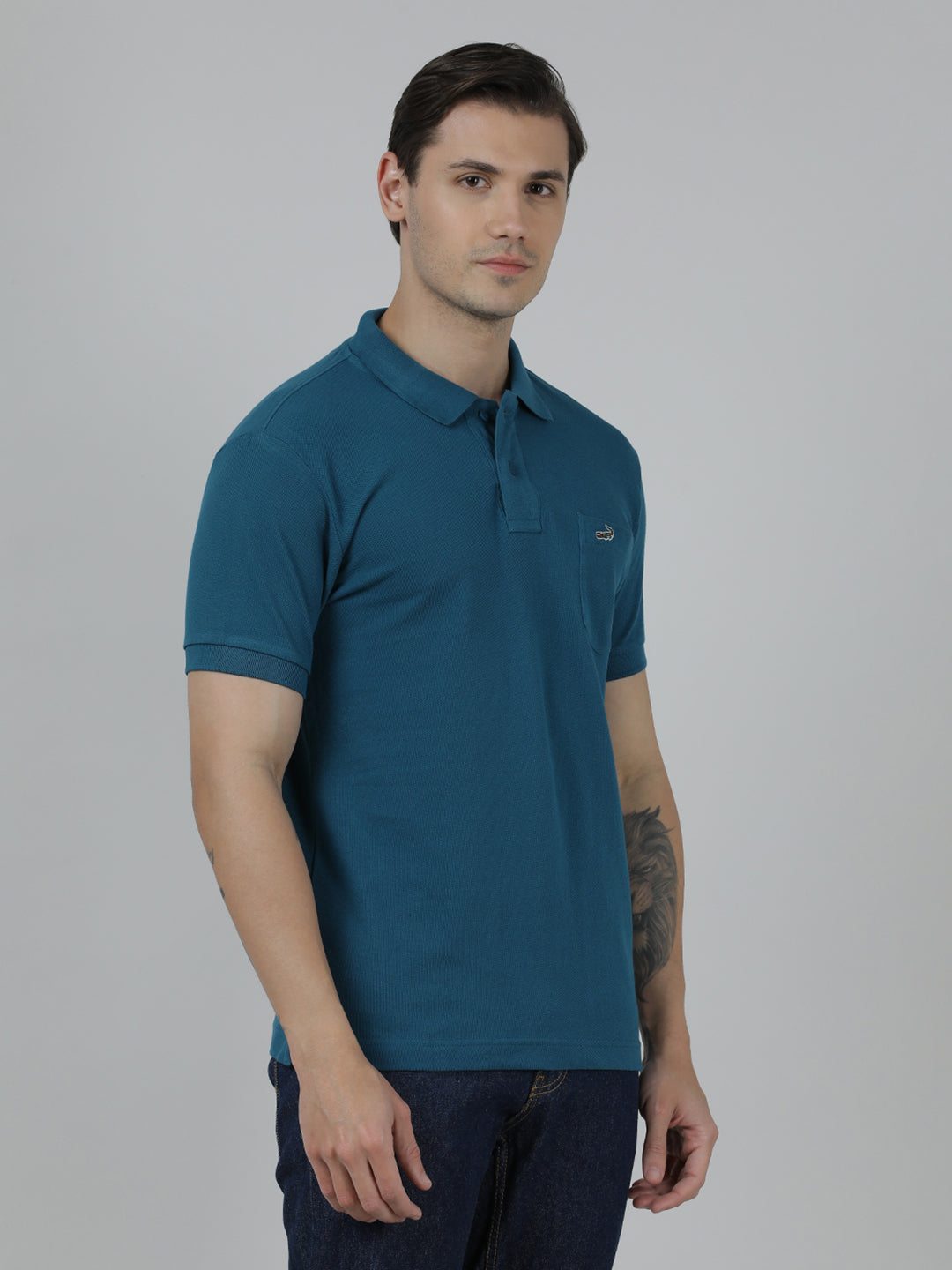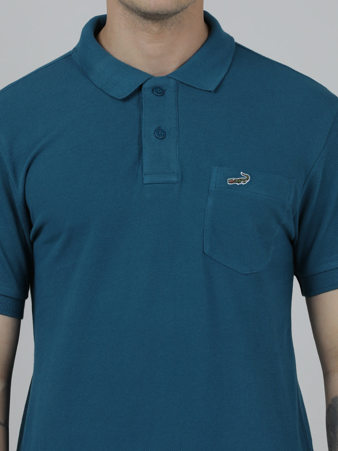 Solid Slim Fit Blue Polo T-Shirt with Pocket