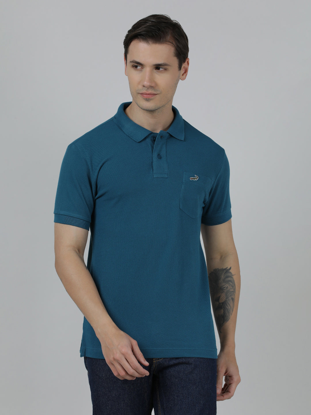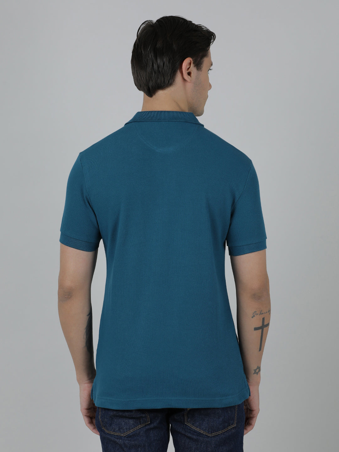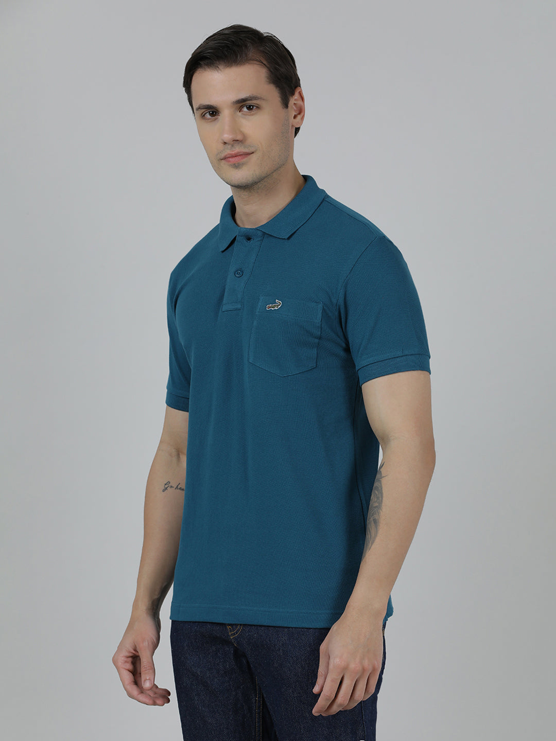 Solid Slim Fit Blue Polo T-Shirt with Pocket