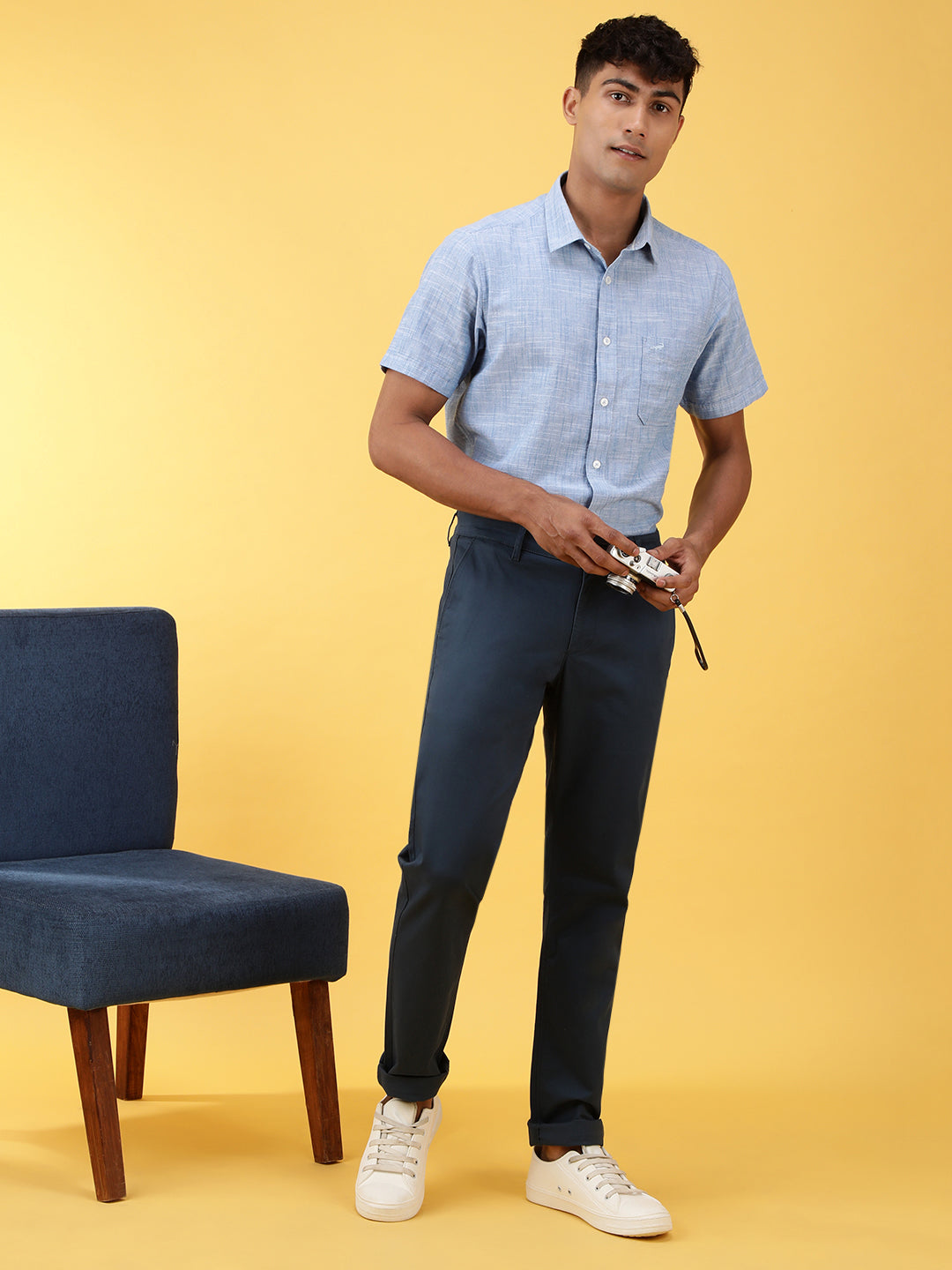 Solid Slim Fit Casual Trouser Navy
