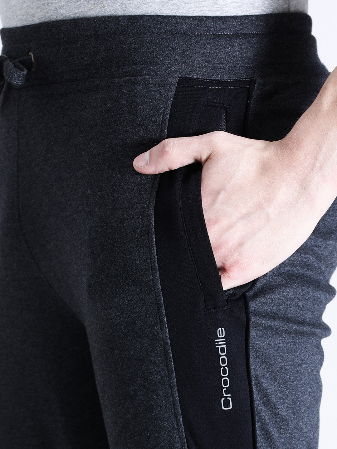 Solid Slim Fit Charcoal Melange Track Pant