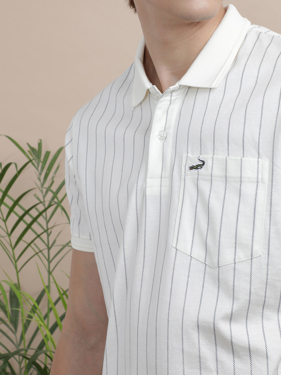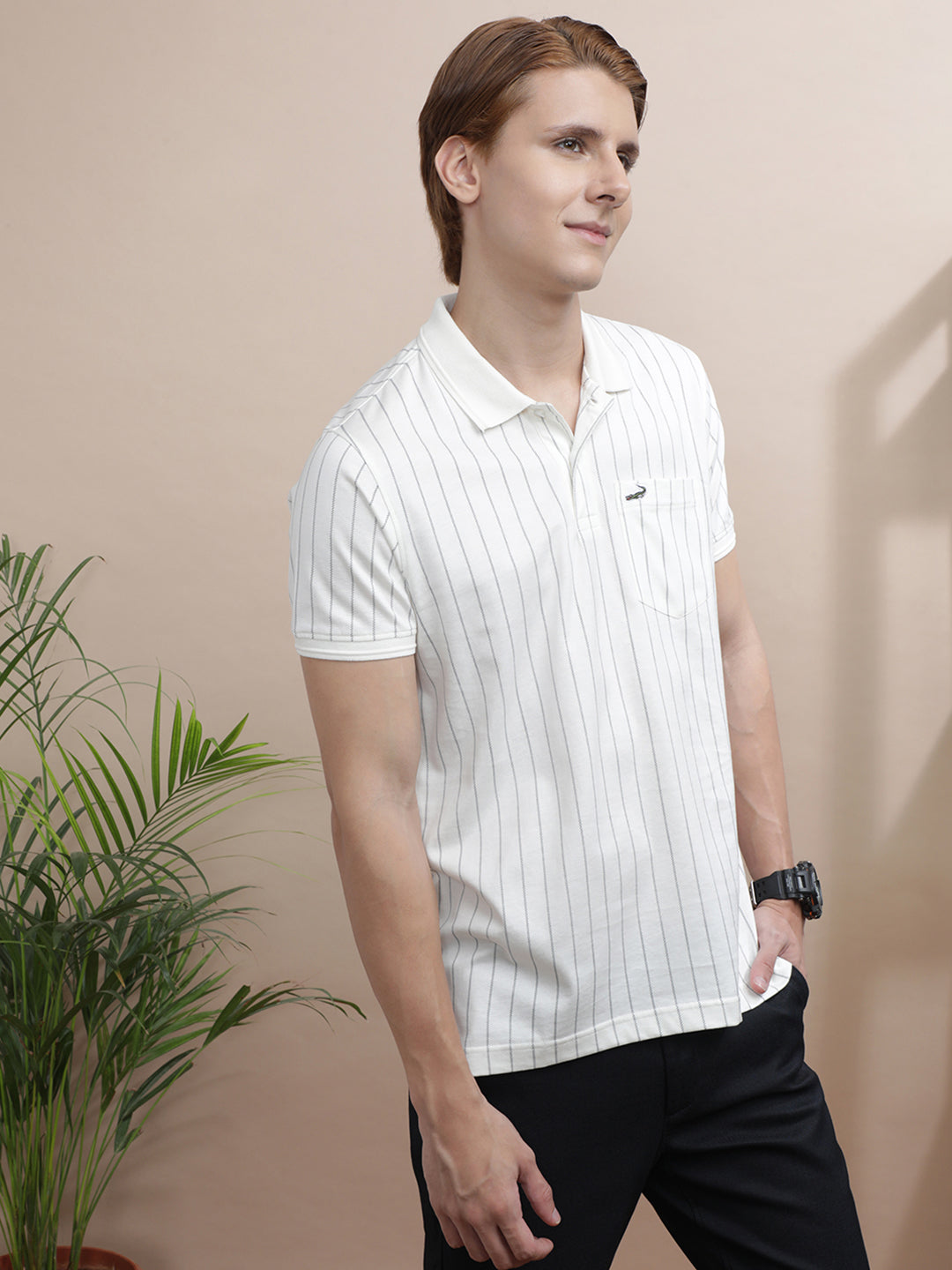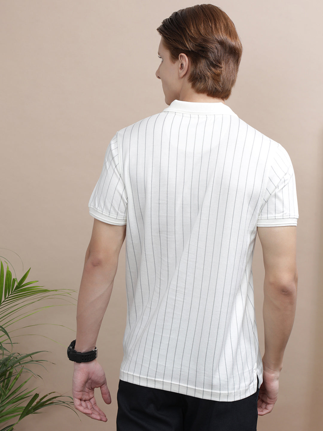 Striped Cream Half Sleeve Casual Polo T-Shirt