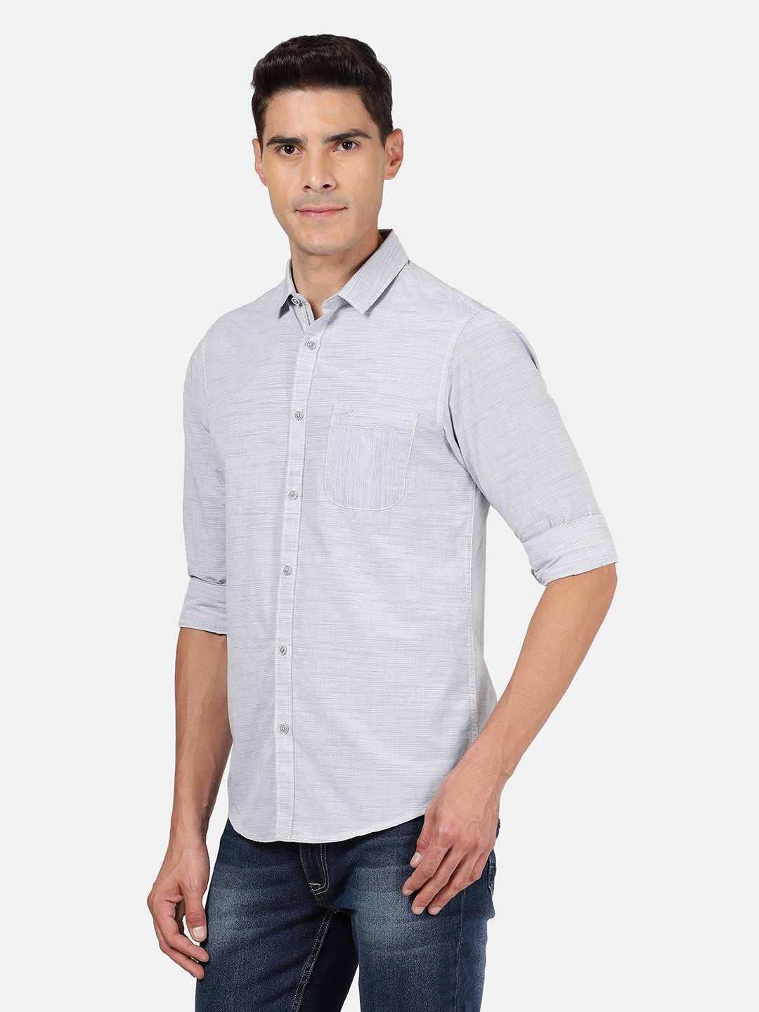 Striped Full Sleeve 100% Cotton Shirt Light Blue