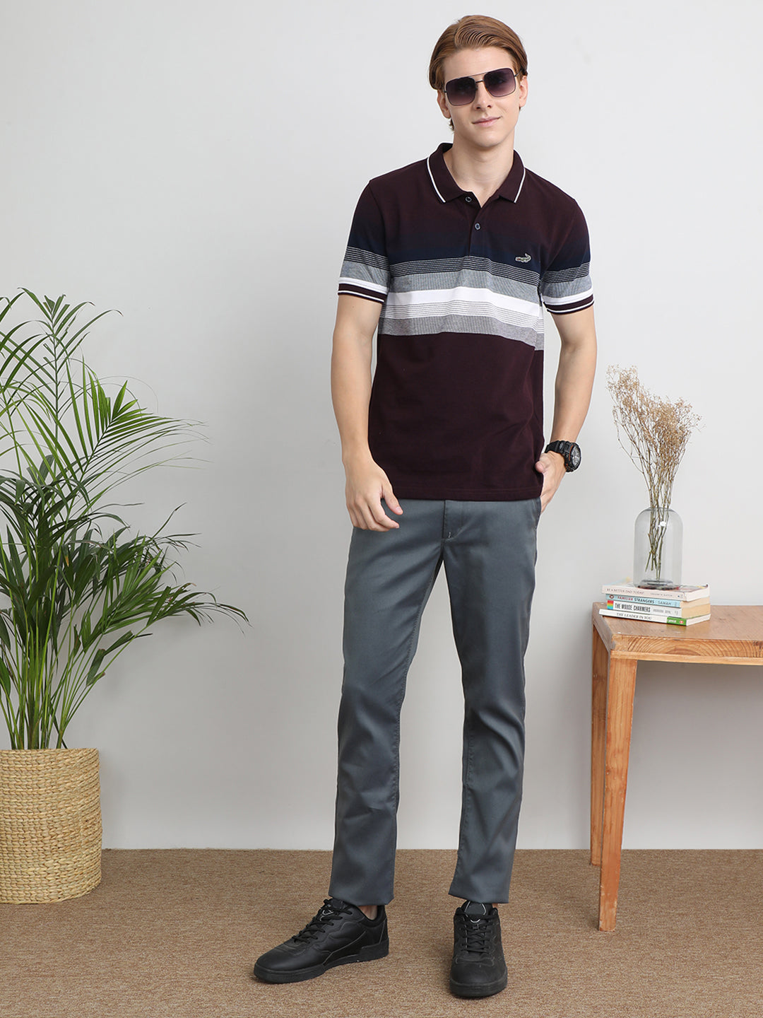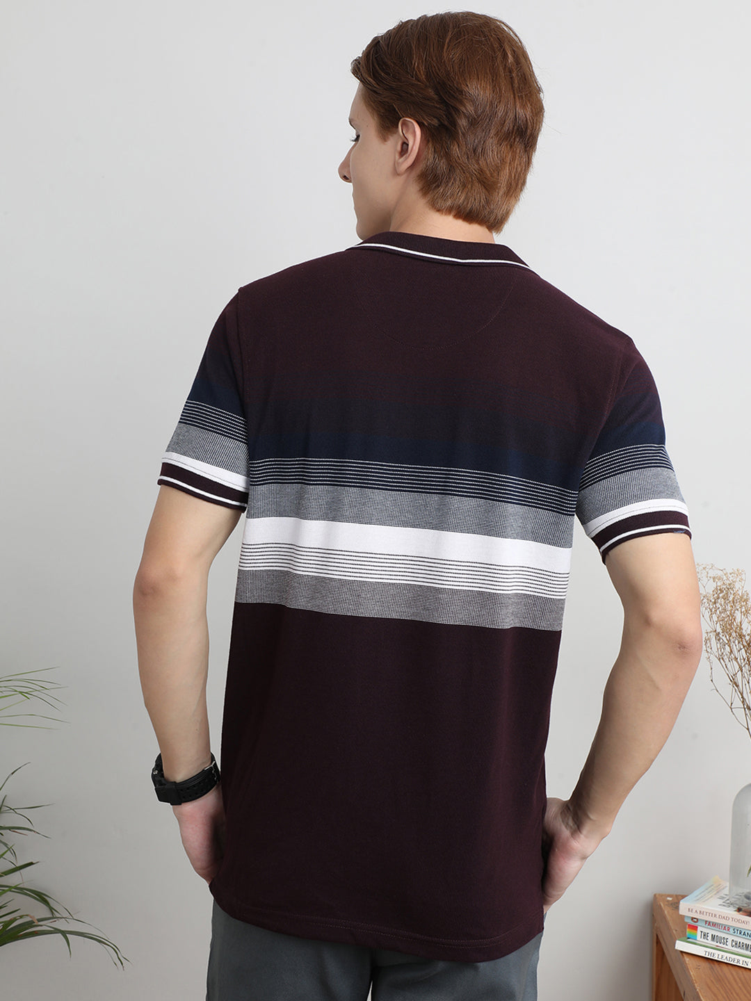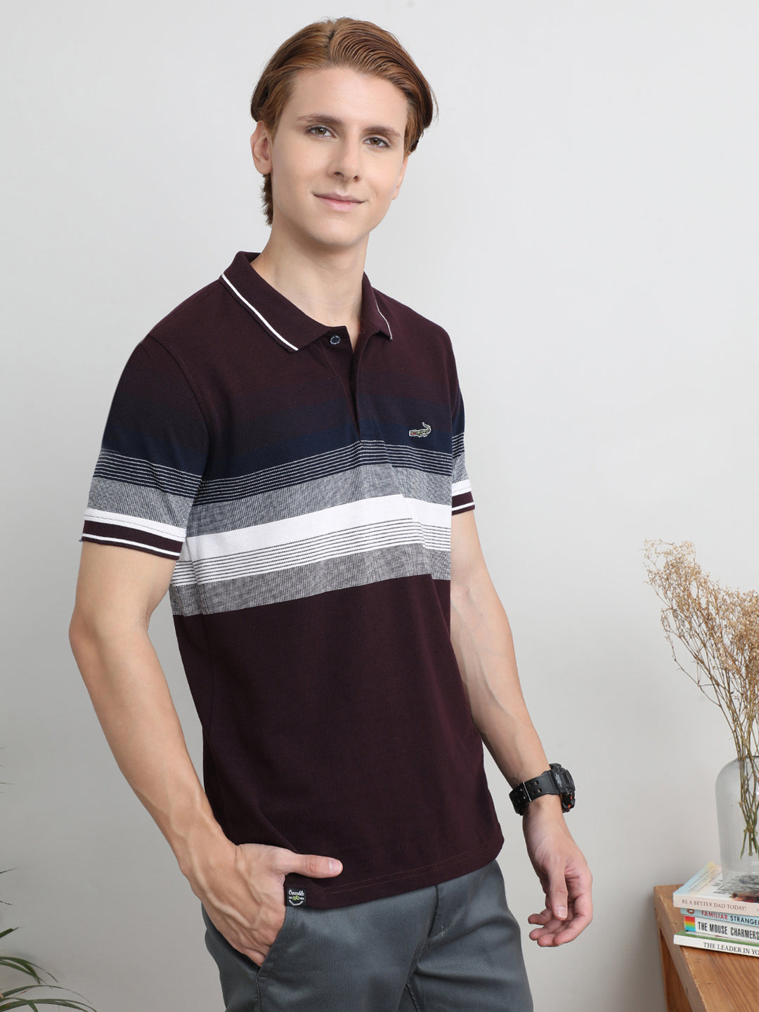 Striped Half Sleeve Casual Brown Polo T-Shirt