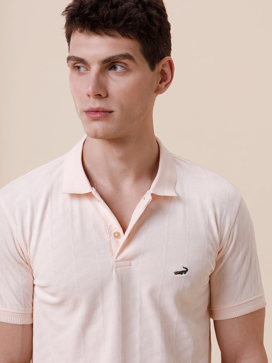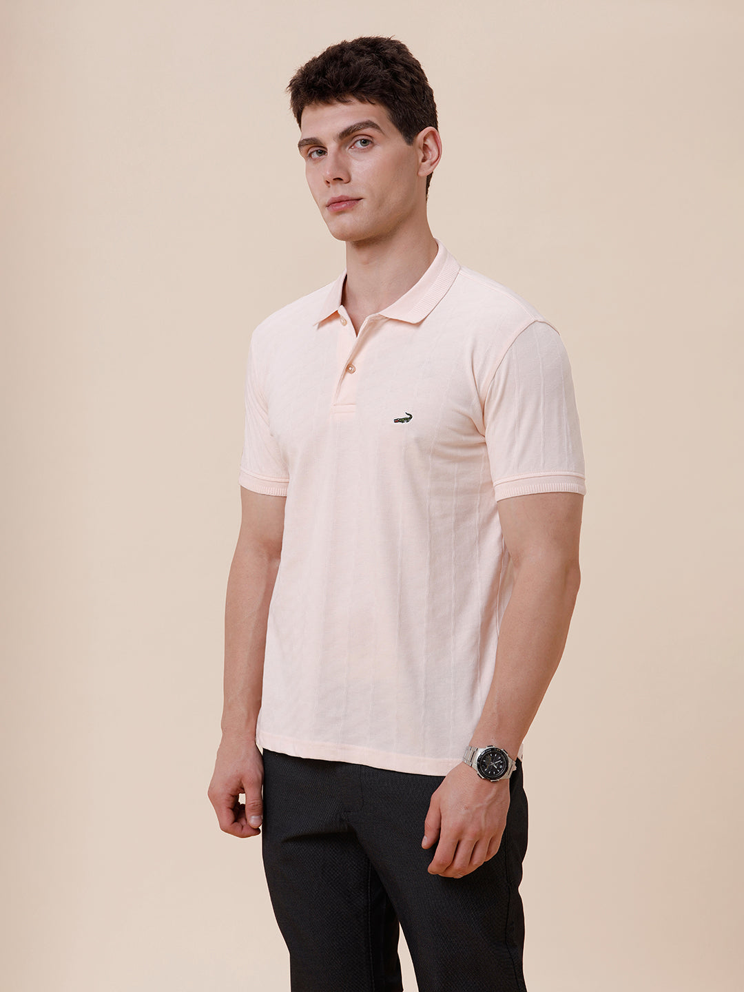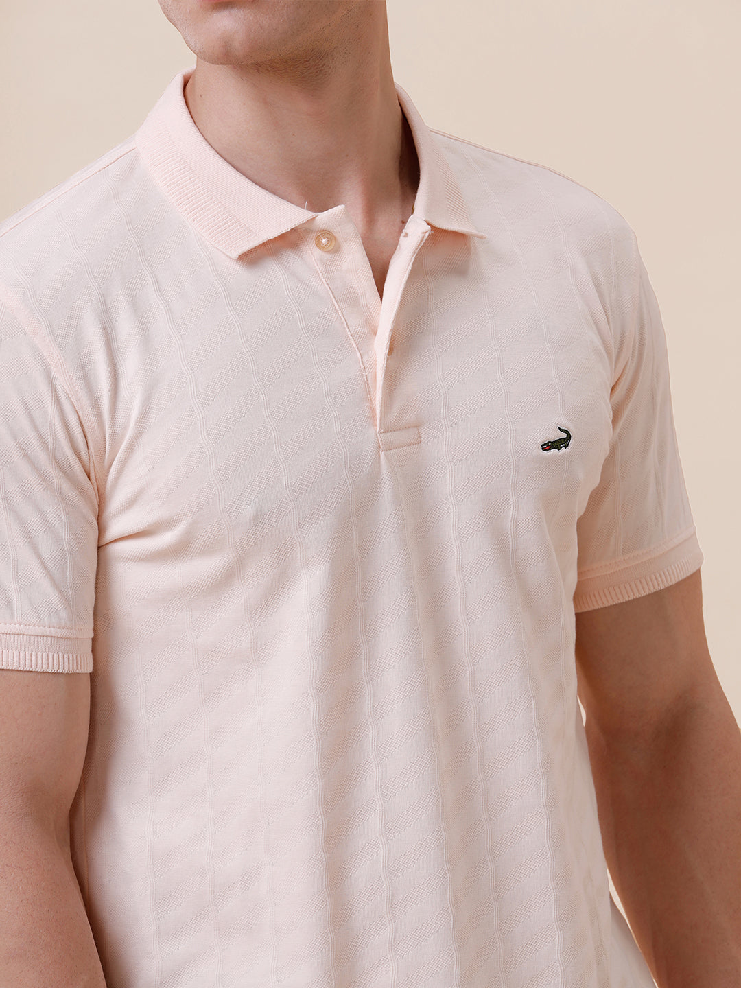 Tonal Cross Self Textured Polo Tshirt In Peach