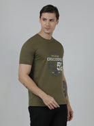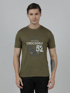 Typography Printed Single Jersey Cotton Olive Green T-Shirts