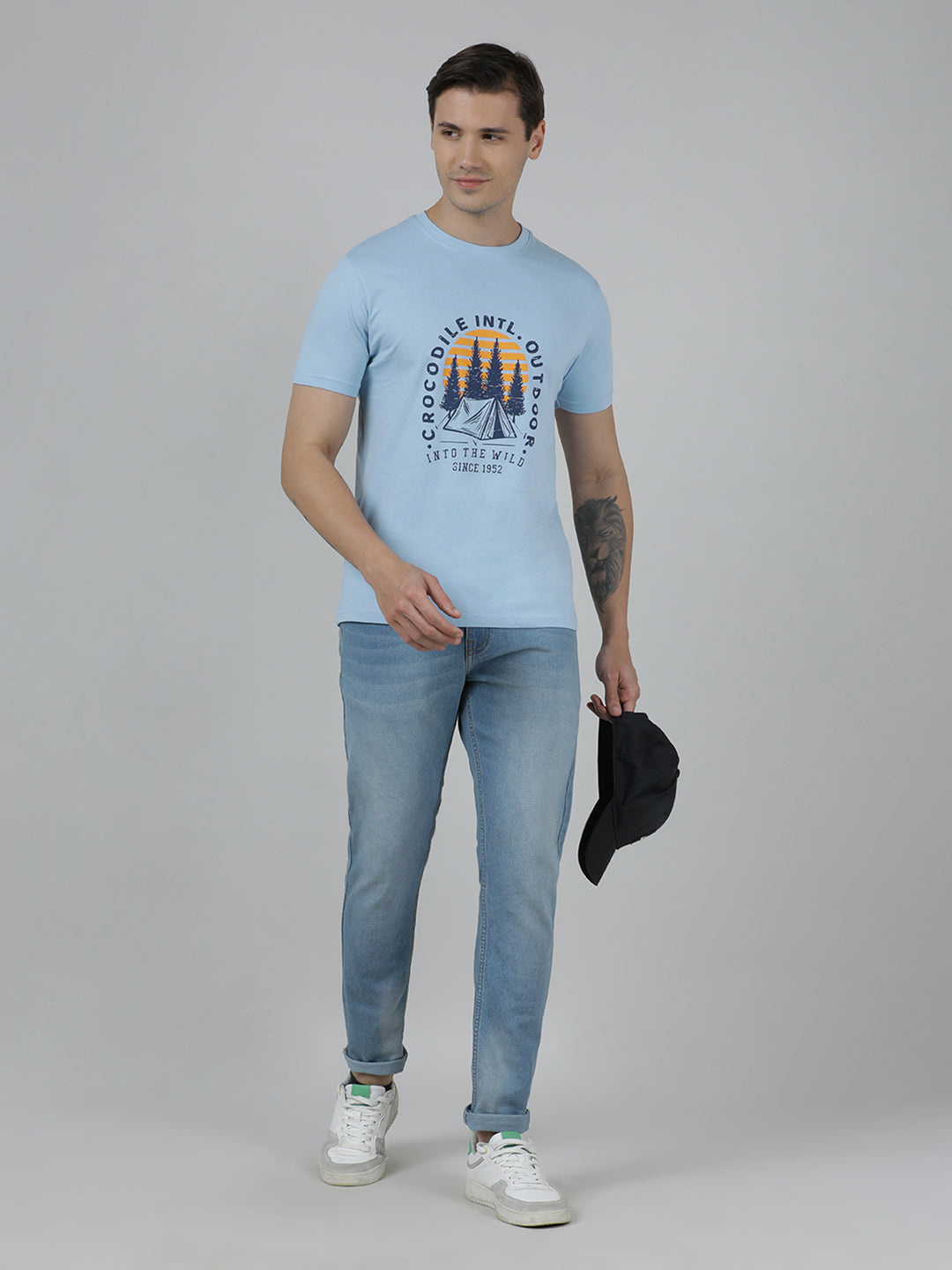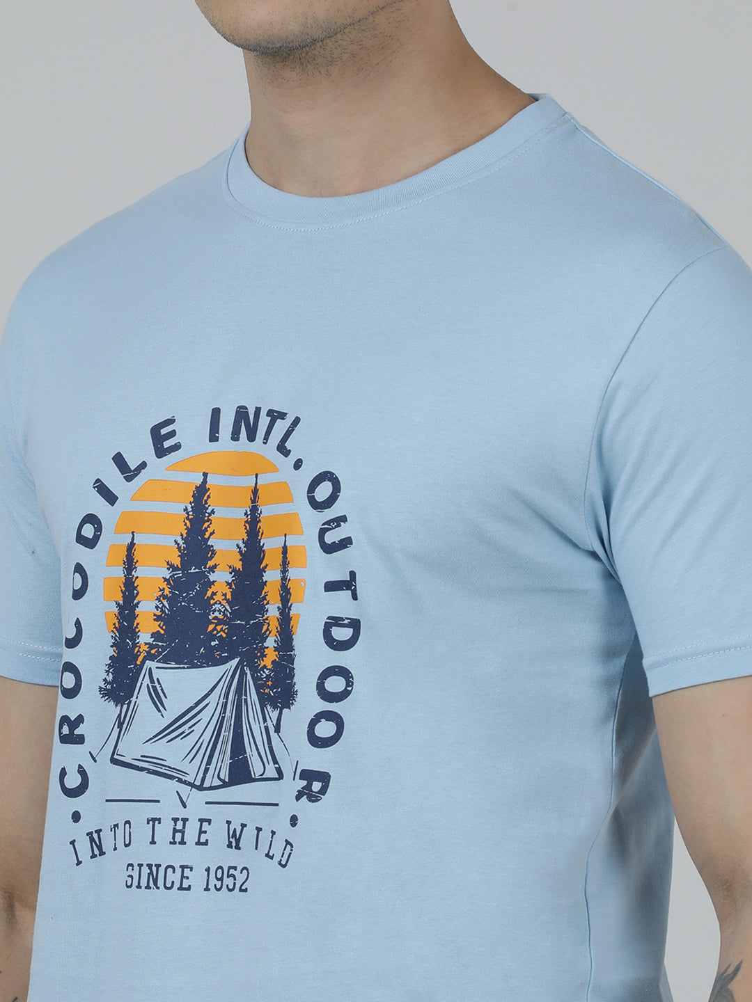 Typography Printed Single Jersey Cotton T-Shirts Blue