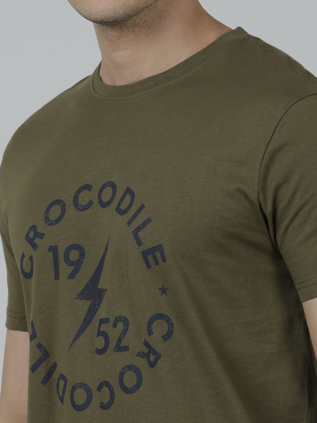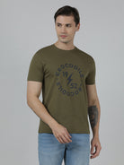 Typography Printed Single Jersey Cotton T-Shirts Olive Green