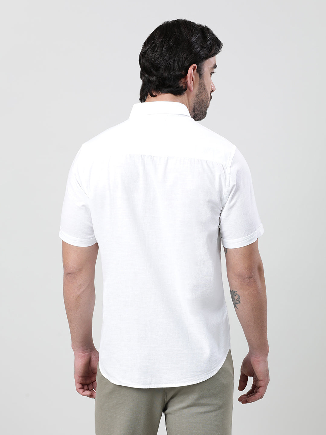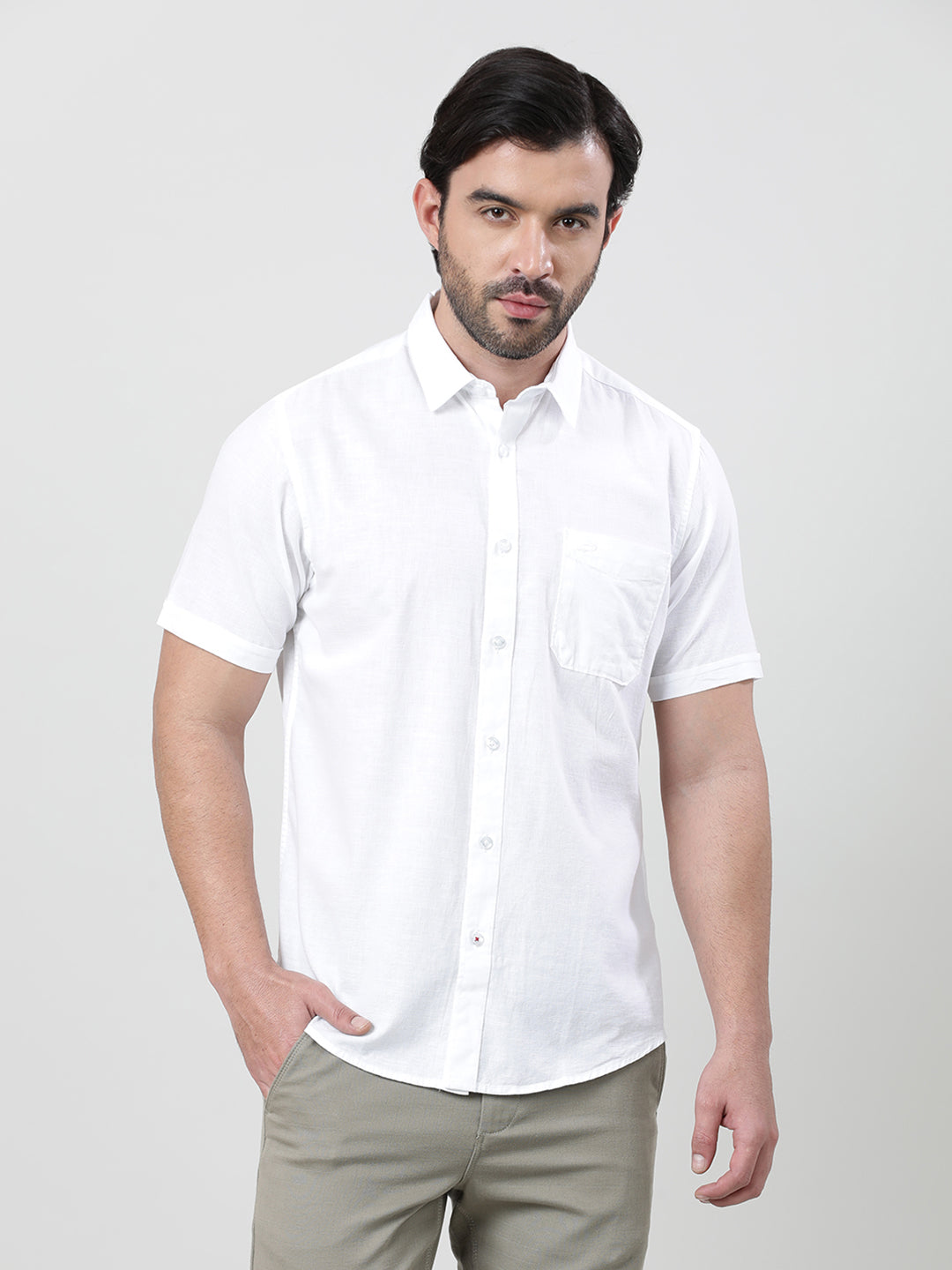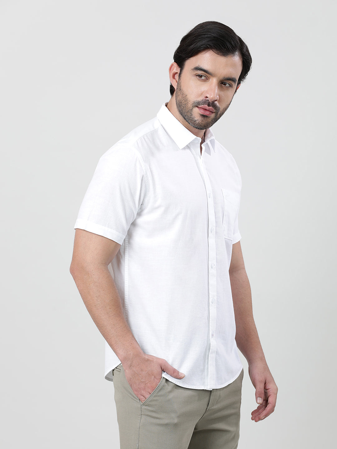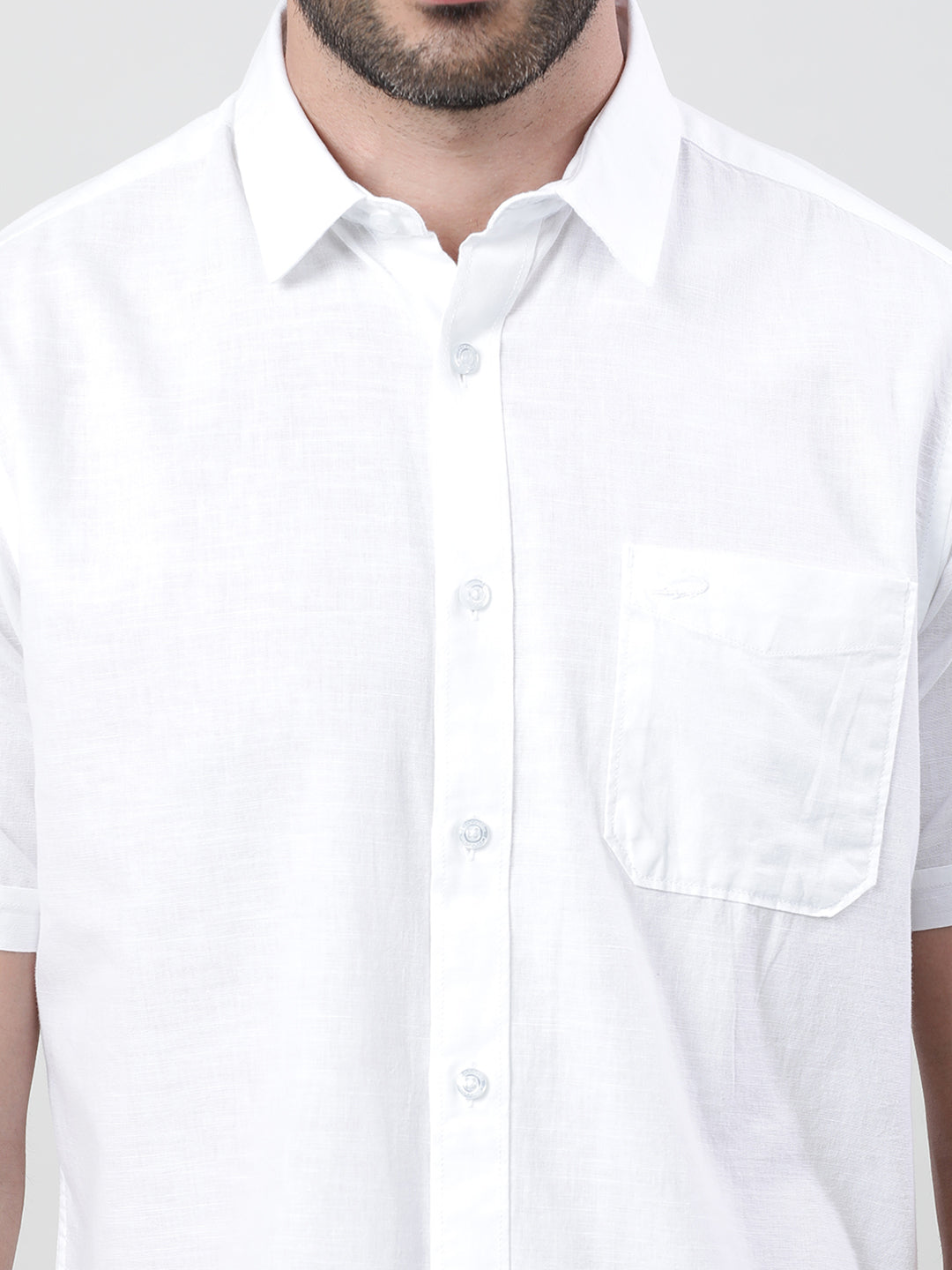 White Solid Casual Half Sleeve 100% Cotton Shirt