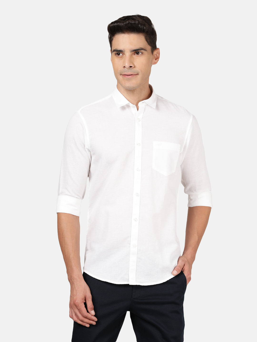 White Solid Full Sleeve Linen Shirt
