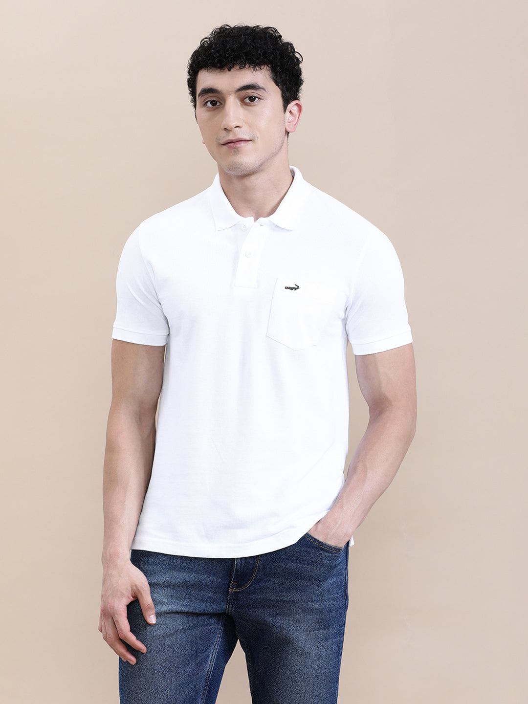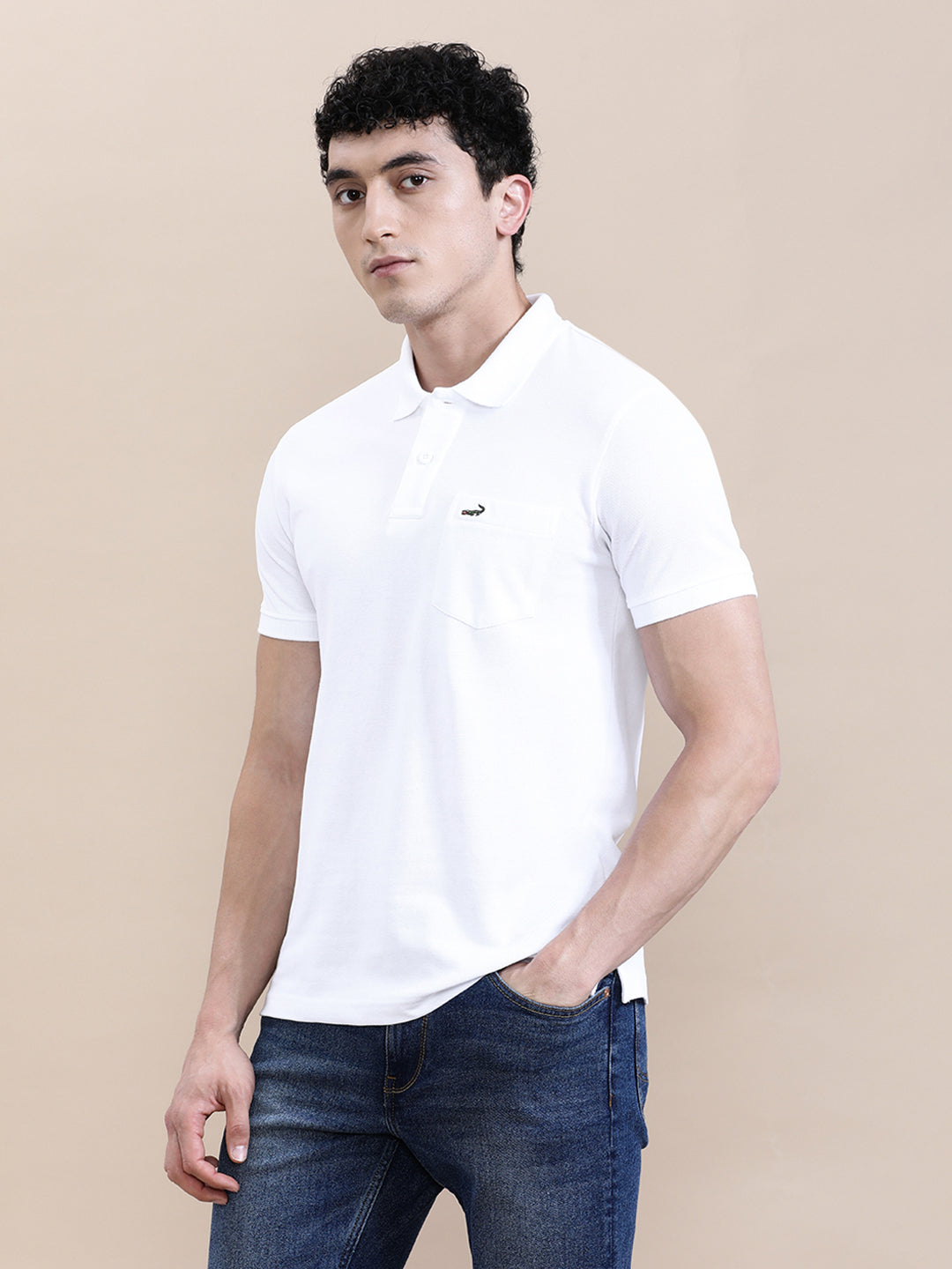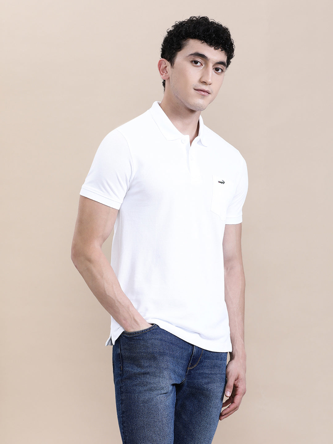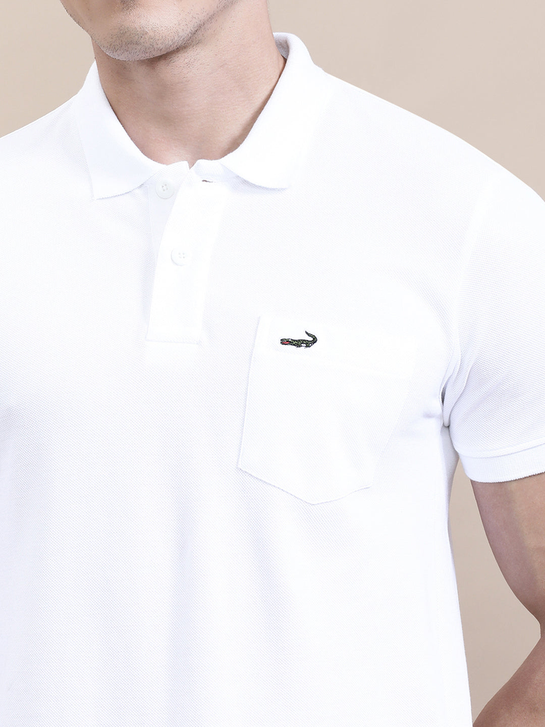 White Solid Polo T-Shirt with Pocket