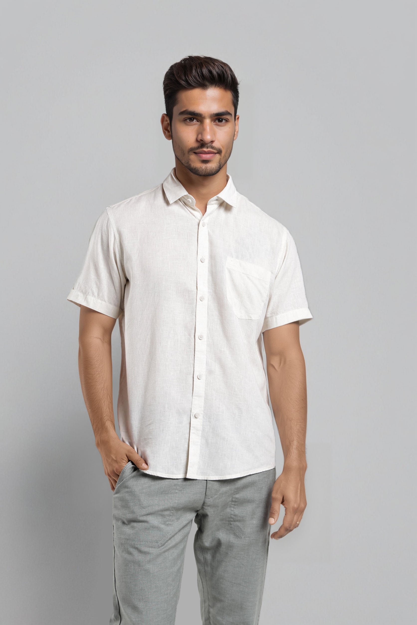 White Variegated Stripe Textured Chisel Shape Pocket Comfort Fit Shirts