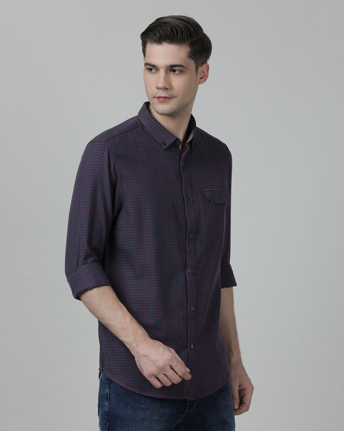 Wine Red Checked Casual Full Sleeve 100% Cotton Shirt