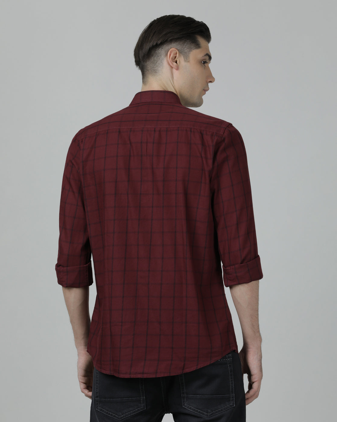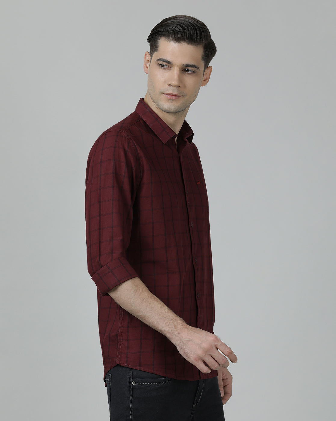 Wine Red Checked Full Sleeve 100% Cotton Casual Shirt