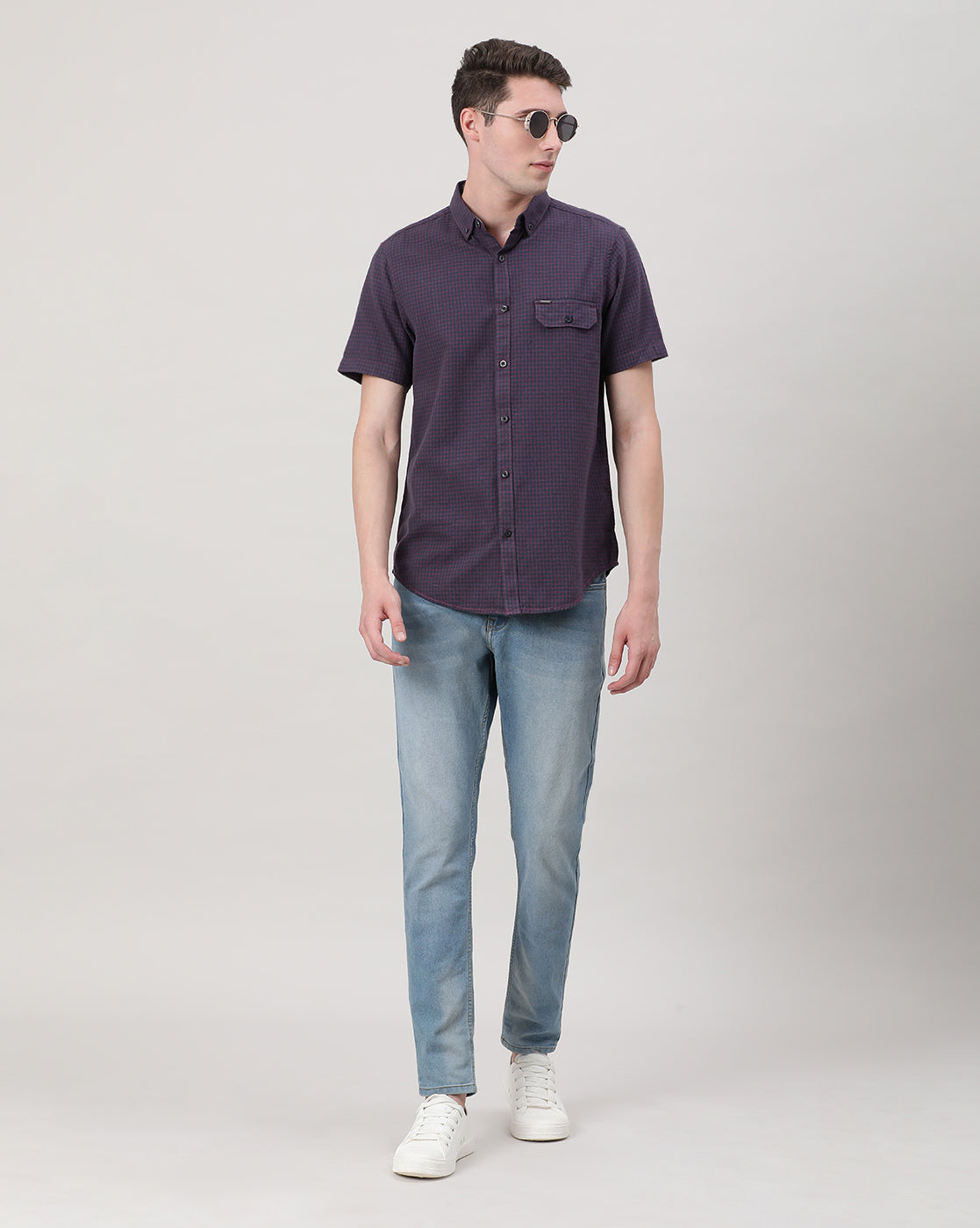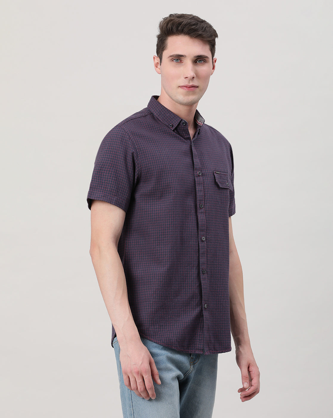 Wine Red Checked Half Sleeve 100% Cotton Shirt