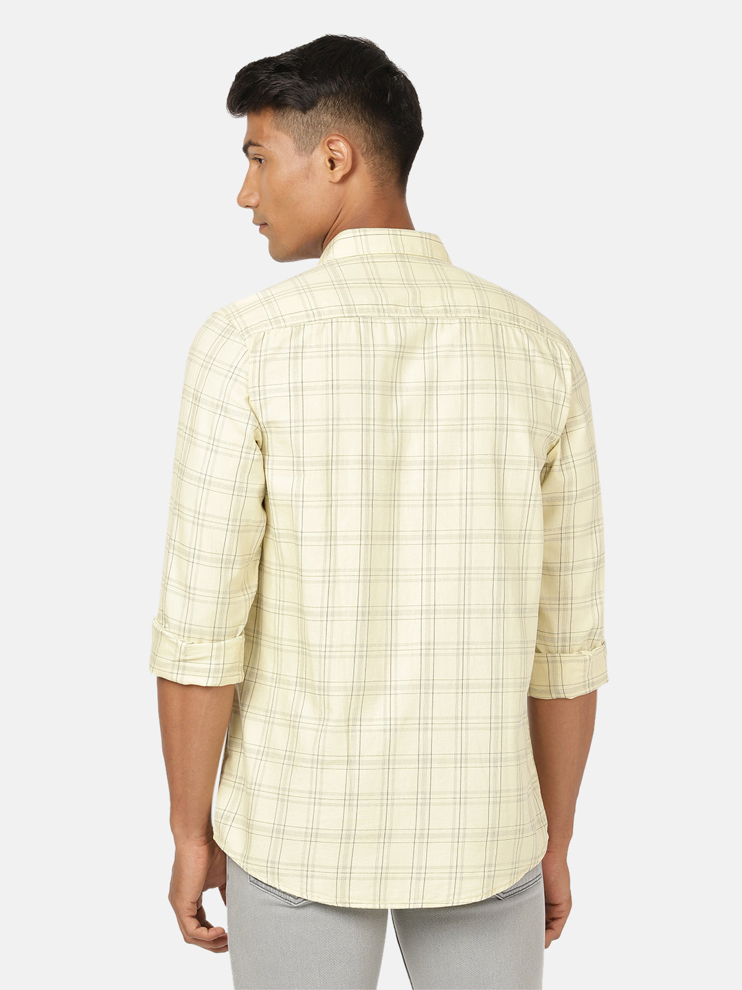 Yellow Checked Full Sleeve 100% Cotton Casual Shirt