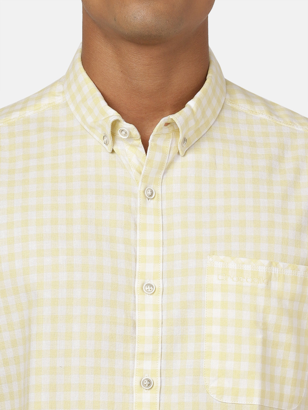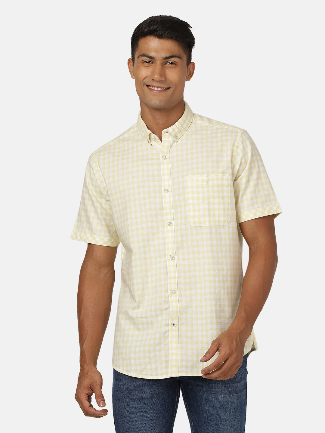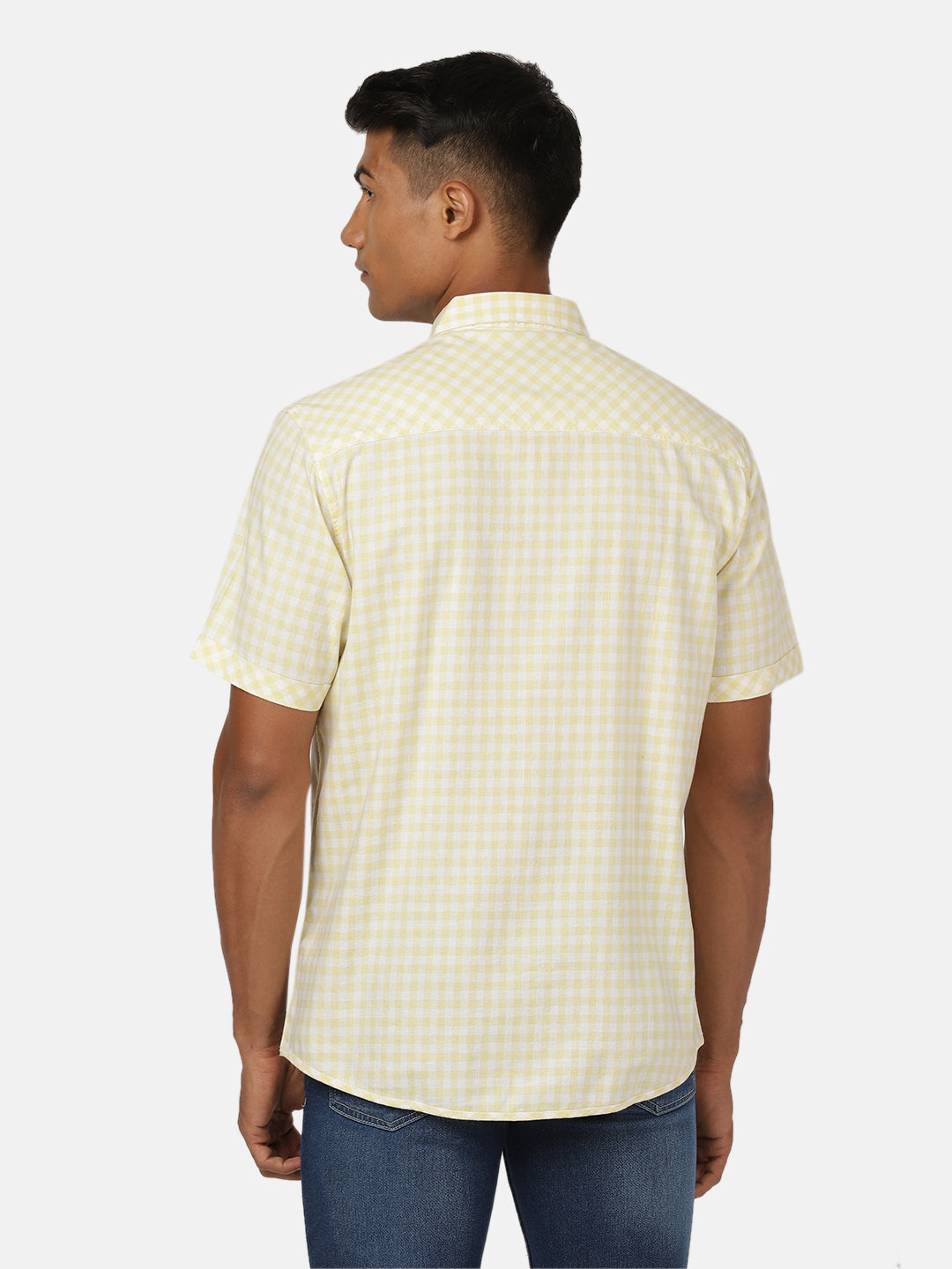 Yellow Checked Half Sleeve 100% Cotton Shirt