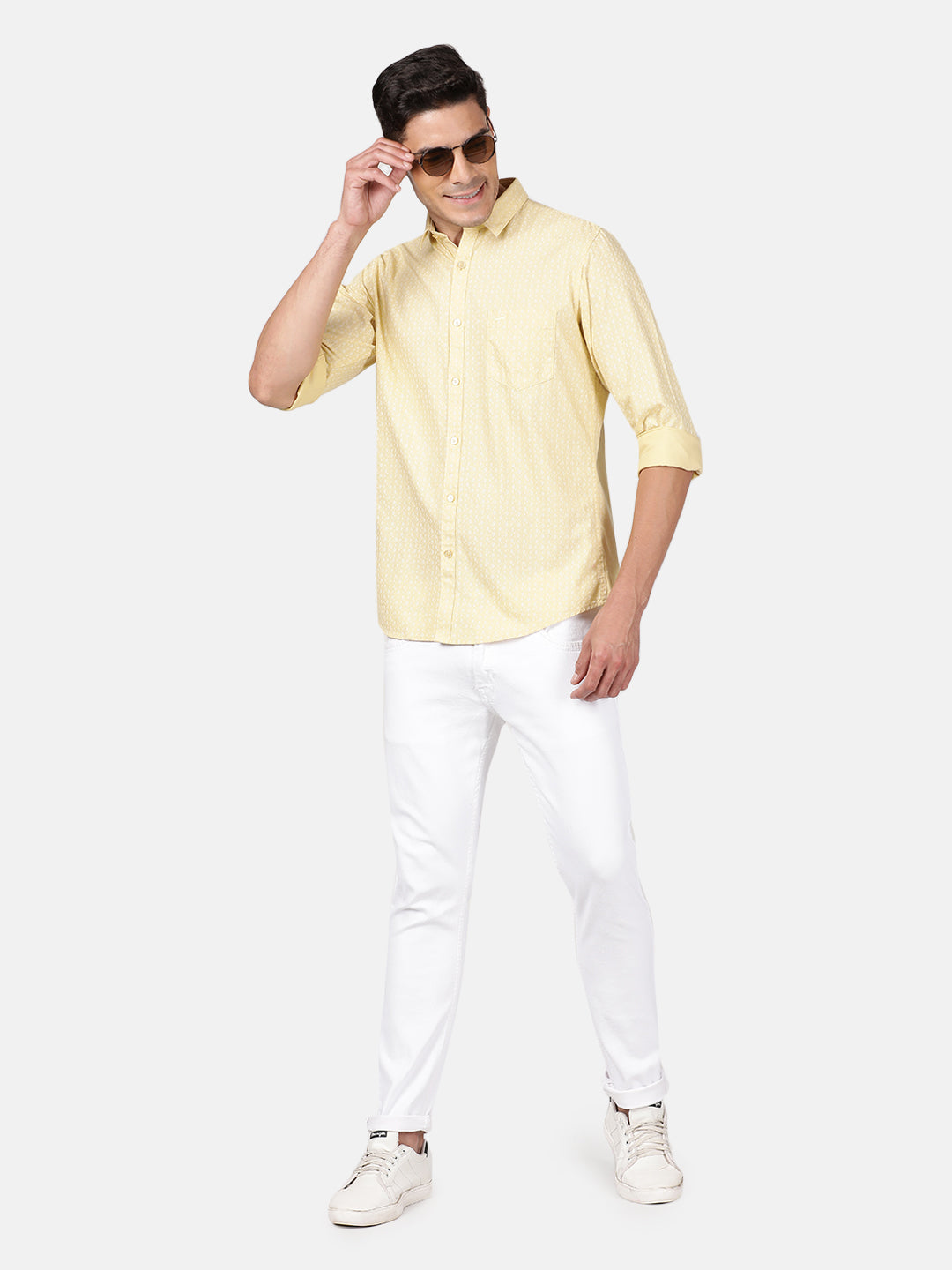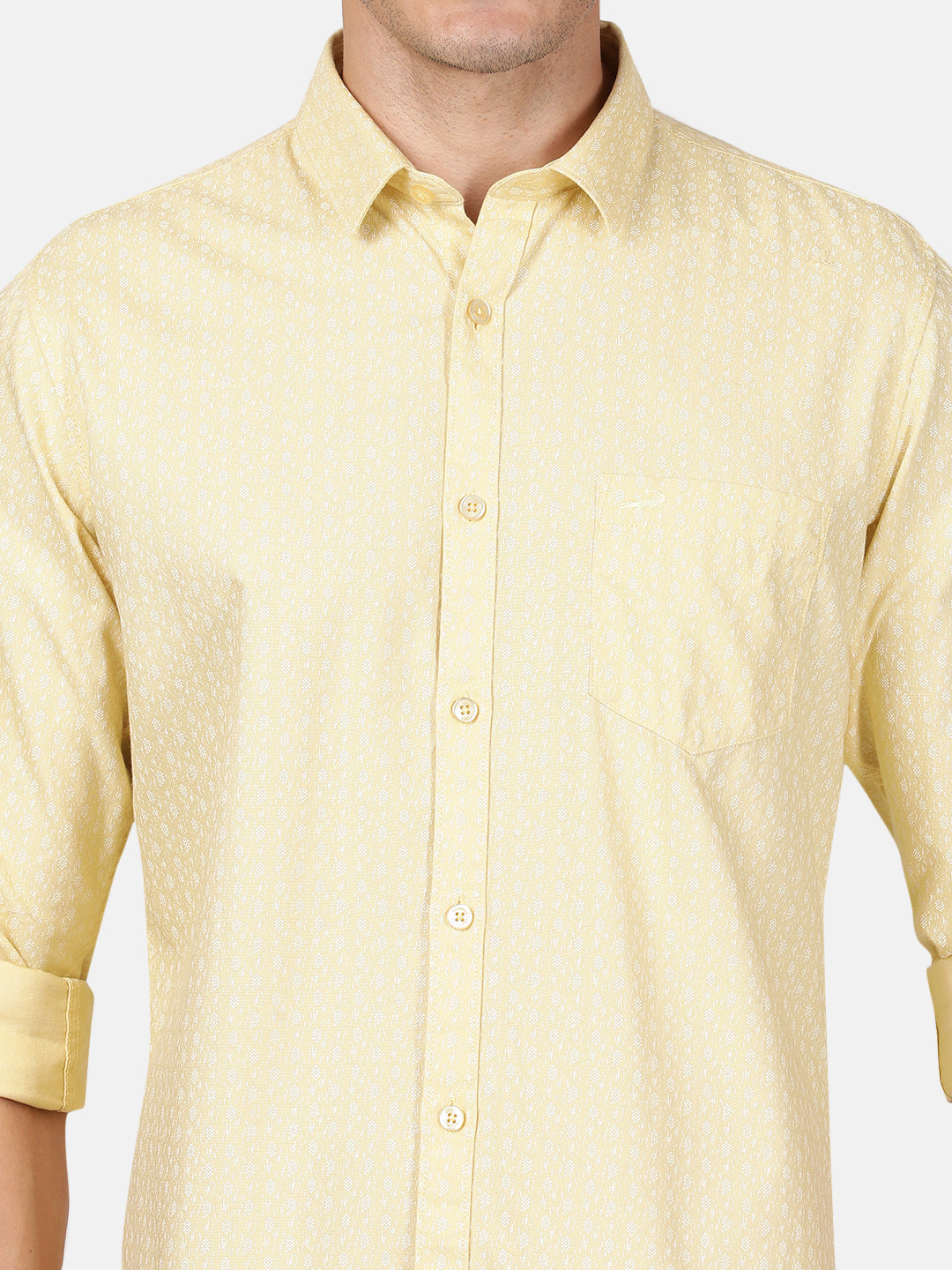 Yellow Printed Full Sleeve 100% Cotton Shirt