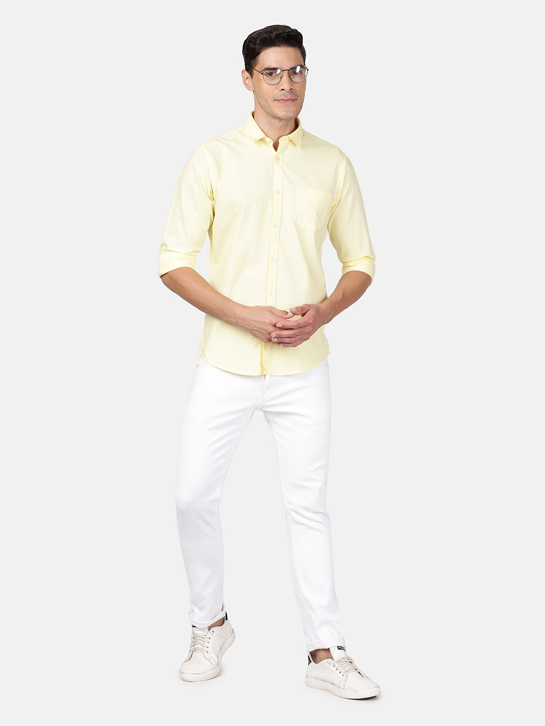 Yellow Solid Casual Full Sleeve 100% Cotton Shirt